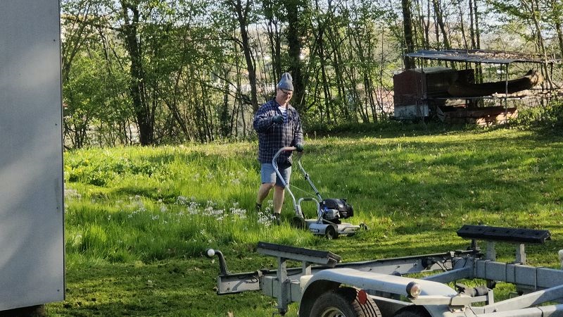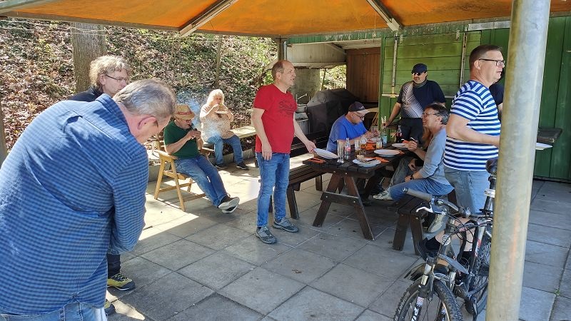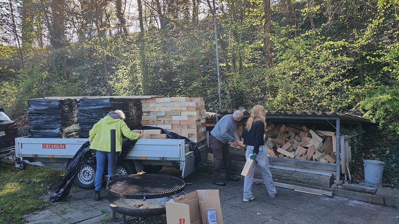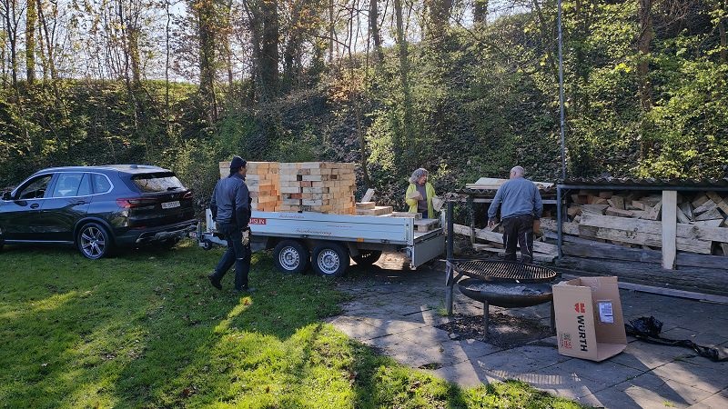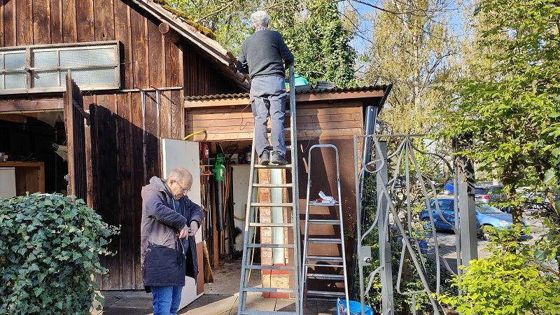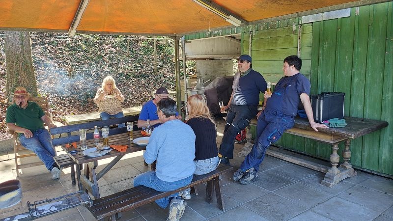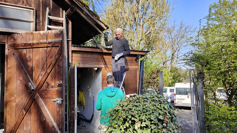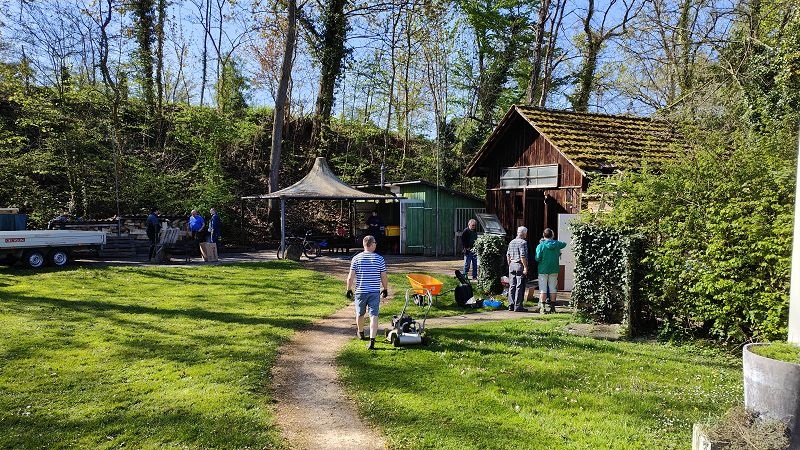 Auf dem Clubgelände musste die Umgebung hergerichtet werden, Sträucher und Rasen wurden getrimmt und die Gebäude gereinigt. Das Angelieferte Feuerholz wird am dafür vorgesehen Ort aufgestapelt. Am Geräteschopf musste die Dachrinne