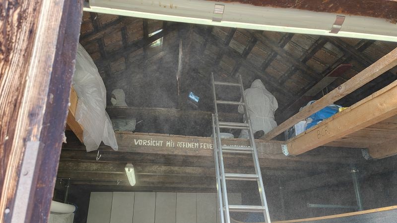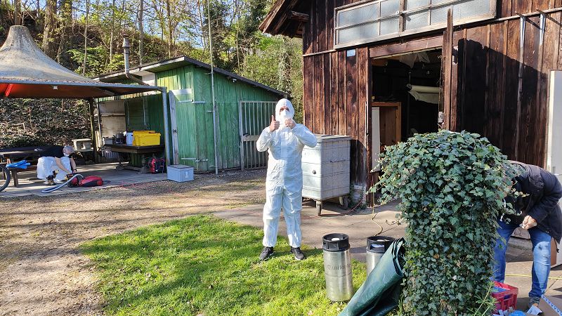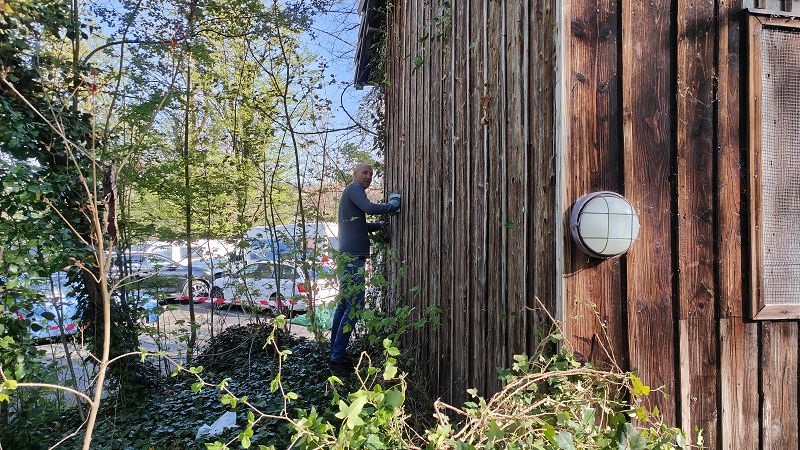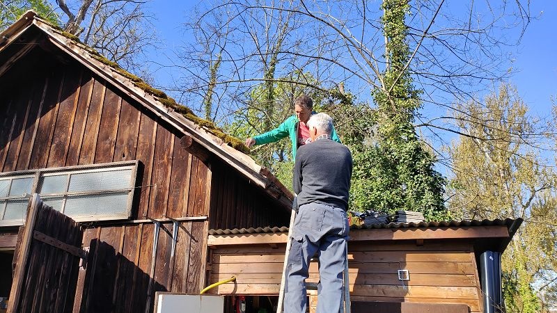 Im Häuschen mussten die Dachbalken gesäubert und von Holzwürmern befreit werden. Der Winter hinterlässt doch die eine oder Andere Spur, die beseitigt werden muss.