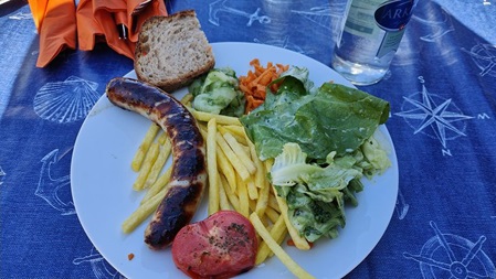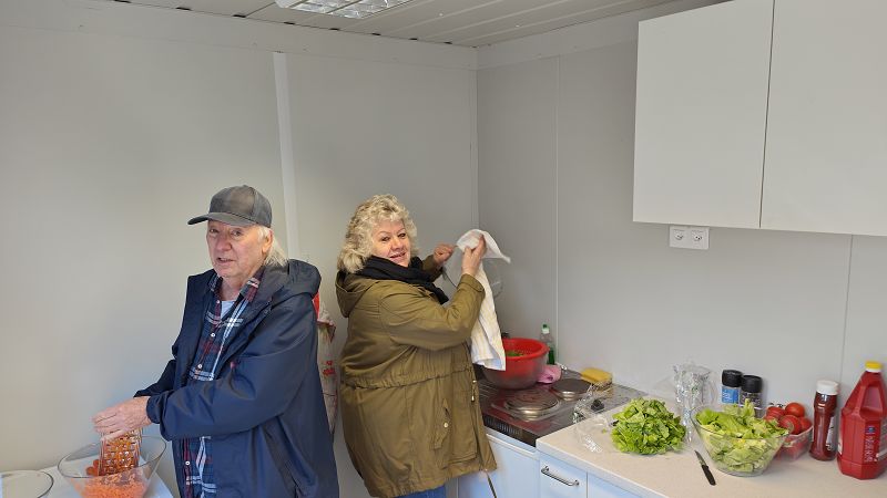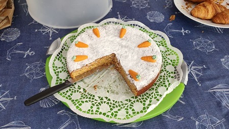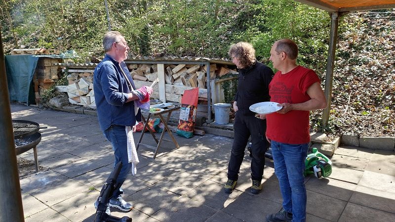 Christian und das Küchen Team haben wieder ein feines Mittagessen, mit Steak und Bratwürsten mit Pommes und Salat hergerichtet. Zum Dessert gab es feine Rüebli Torte mit Kaffee.